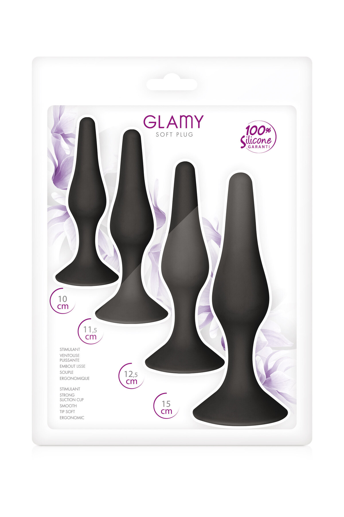 Contentez vous avec ce coffret de plugs anal noirs munis de ventouses de la marque Glamy.
