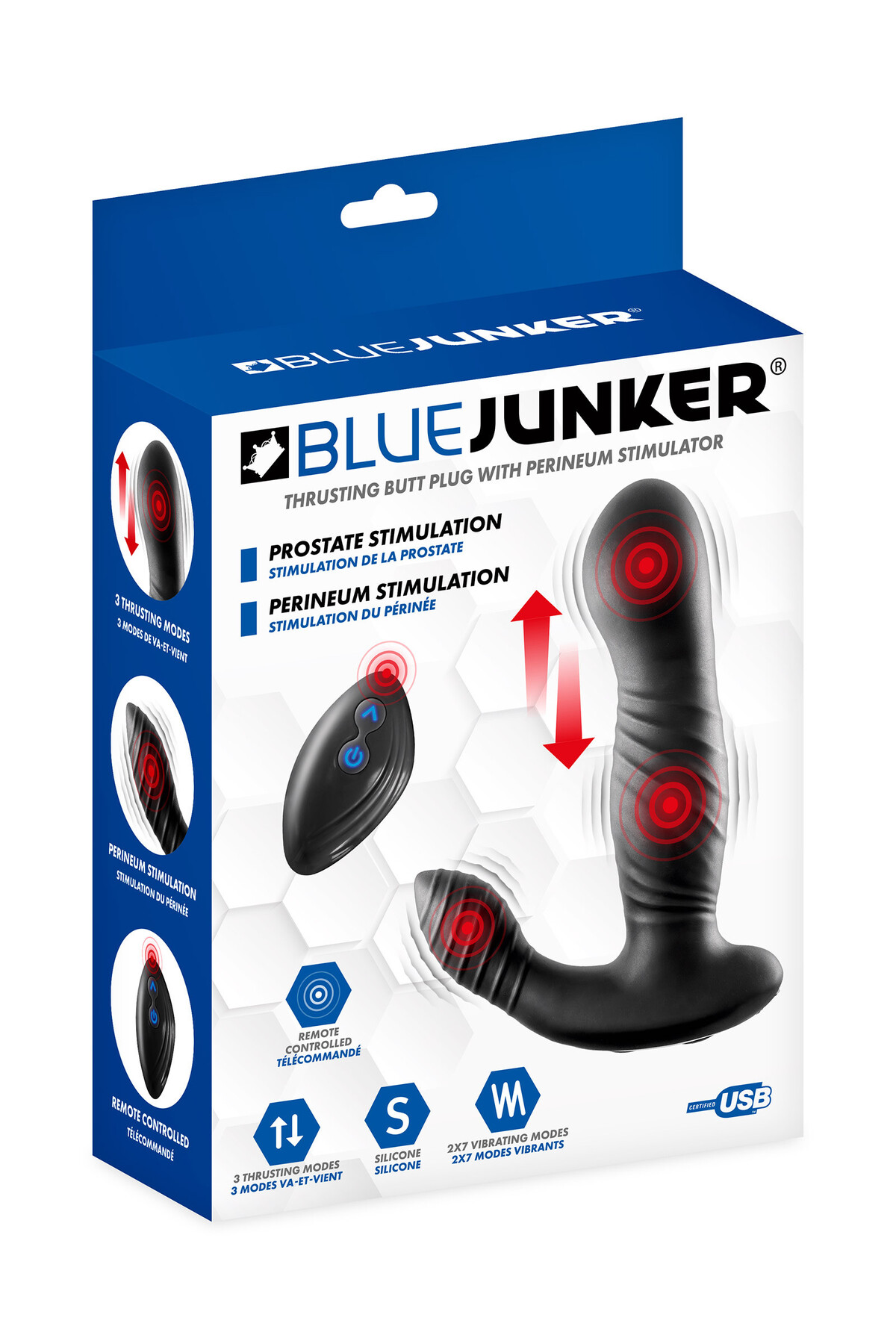 - Fonctions : 3 modes de massage prostatique, 7 modes de vibrations anales, 7 modes de vibrations périnéales
